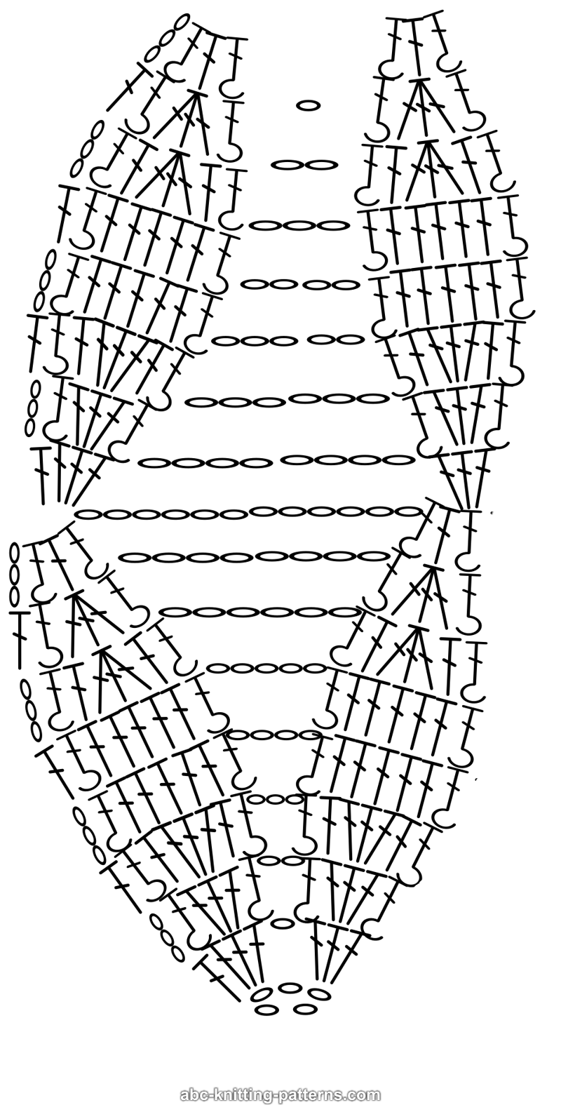 The shawl is worked sideways, from the pointy end in “embossed leaves” pattern, which is a combination of regular dc and post stitch dc. To shape the shawl, one more leaf is added every 8 rows. When the desired width of the shawl is achieved, the shaping is achieved by removing one “leaf” every 8 rows. The shawl can be crocheted in any weight yarn. There are instructions for fingering and sport weight yarn. The difference is in a number of of increased and decreased “leaves”.
