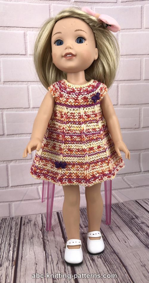 This pattern guides you through creating a sleeveless dress worked top-down in garter stitch. The dress is knitted seamlessly, moving back and forth to form a simple yet charming design. Perfect for summer, it offers a fun project for knitters of all levels. Follow the steps to craft a delightful outfit for your doll.