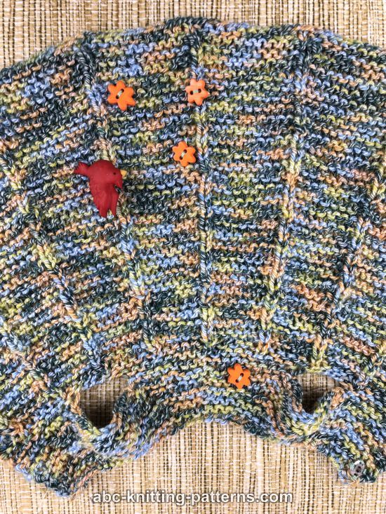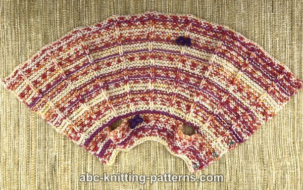 Gauge: 28 st x 44 rows = 4" x 4" (10 cm x 10 cm) for garter st.